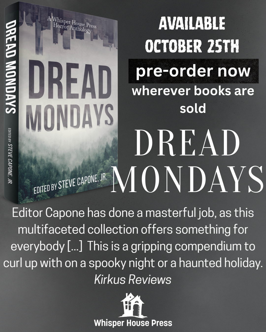 This update will be short and sweet. Mainly I want to highlight my short story "Closed for Maintenance" in the upcoming anthology Dread Mondays with Whisper House Press. Which is launching THIS Saturday, Oct 25th! AAAH!!!